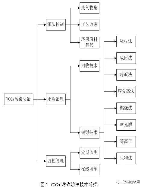 目前,廢氣治理行業(yè)公認的處理技術(shù)可分為回收技術(shù)和銷毀技術(shù),整體的VOCs污染防治技術(shù)具體細分見圖1,