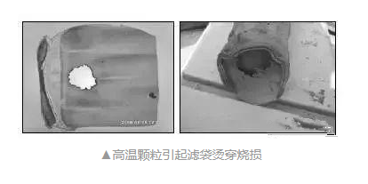 高溫燒灼的表現主要有濾袋由于高溫導致收縮劇烈,嚴重硬化,甚至濾袋表面出現破洞,主要原因為濾袋使用的工況條件中溫度超出濾袋的承受范圍,導致出現這種現象。具體為高溫的顆粒、高溫的煙氣、濾袋高溫熱收縮過大等造成濾料的損傷。
